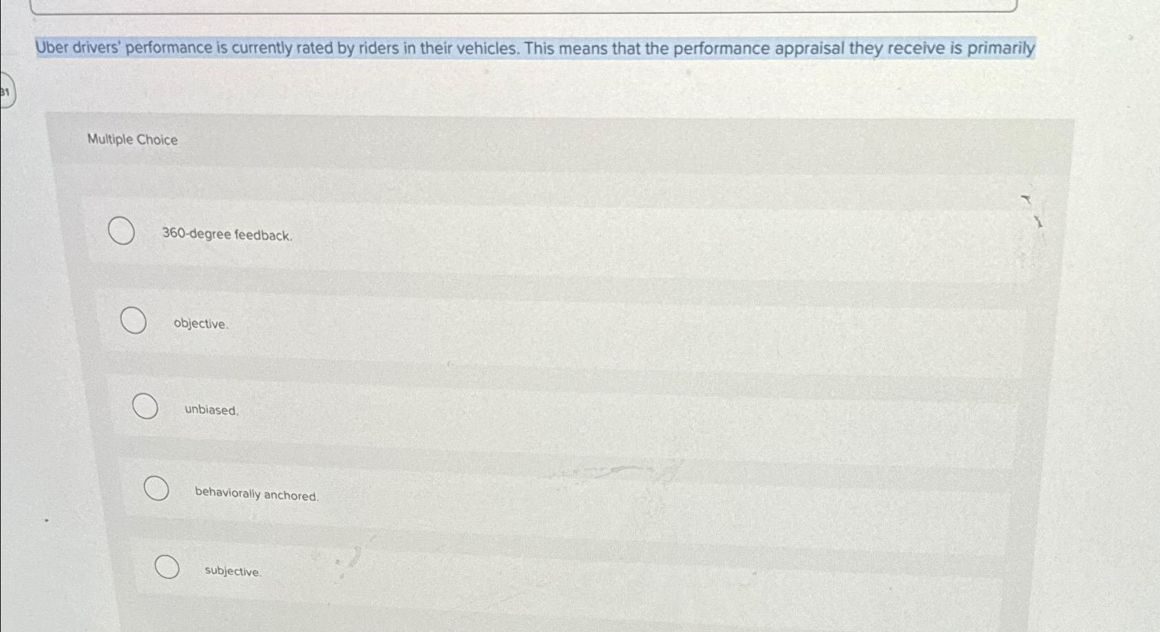 Solved Uber drivers' performance is currently rated by | Chegg.com
