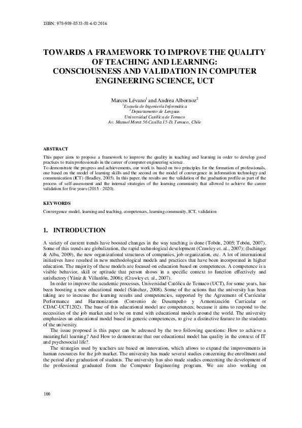 (PDF) Towards a Framework to Improve the Quality of Teaching and ...
