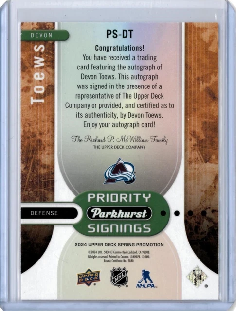 2024 UD SPRING Convention Devon Toews Parkhurst Priority Signings /75 # ...