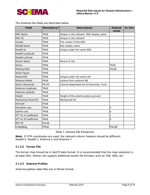 Ultima mentor version_7_0_-_required_data_inputs_for_huawei | PDF