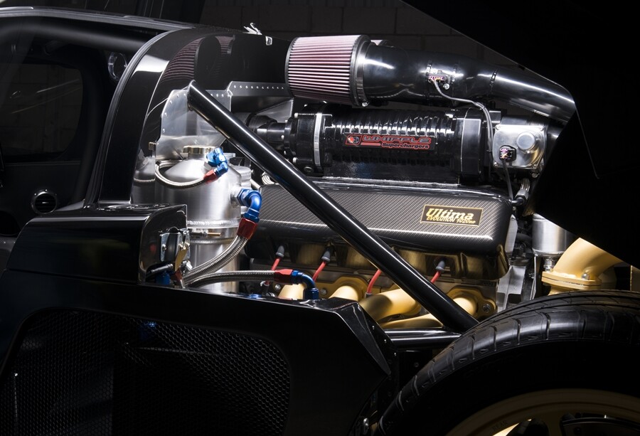 Close-up of the 1020bhp supercharged engine of an Ultima Evolution, at ...