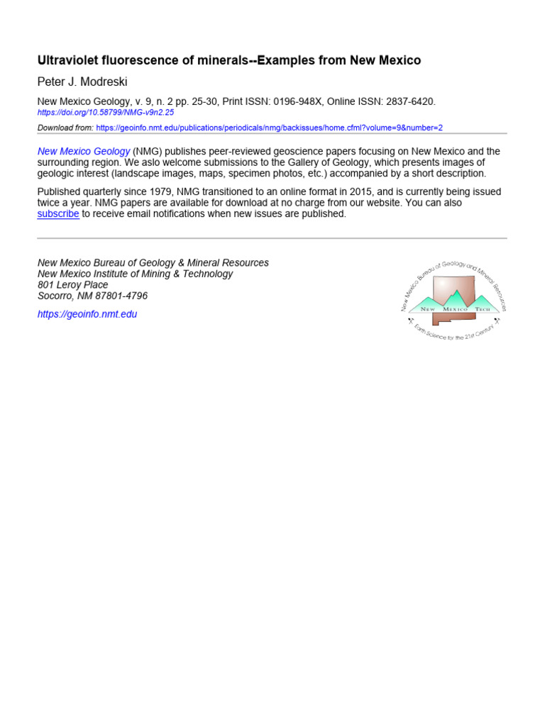 Ultraviolet Fluorescence of Minerals - Examples From New Mexico | PDF ...