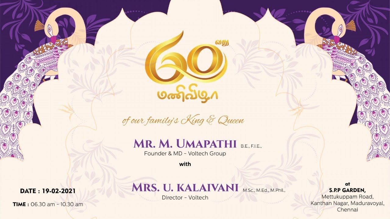 60 மணி விழா of Umapathi M & Kalaivani U , Voltech Founder & Director ...
