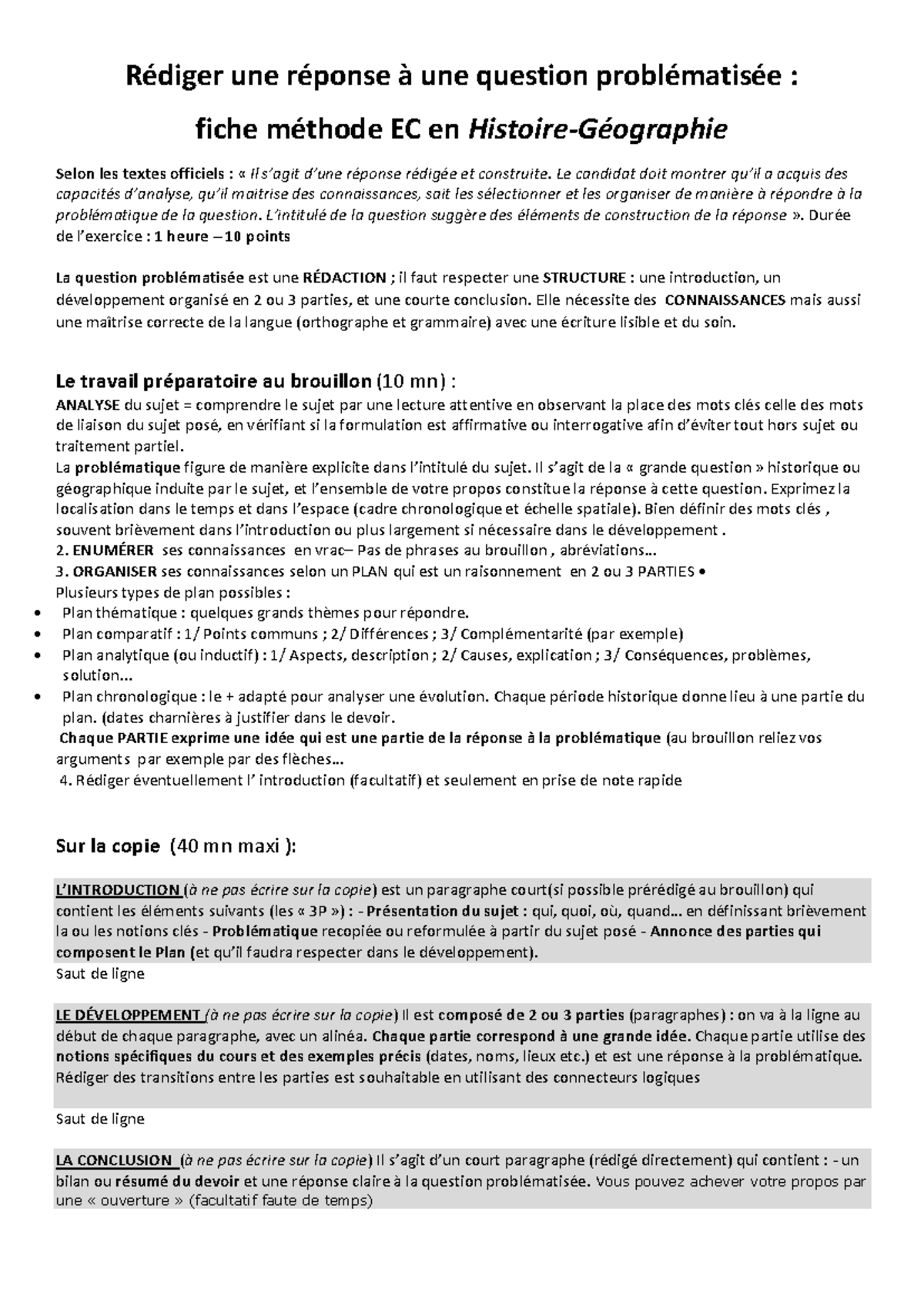 Méthodologie question problématisée - Fiche méthodologie LA RÉPONSE À ...