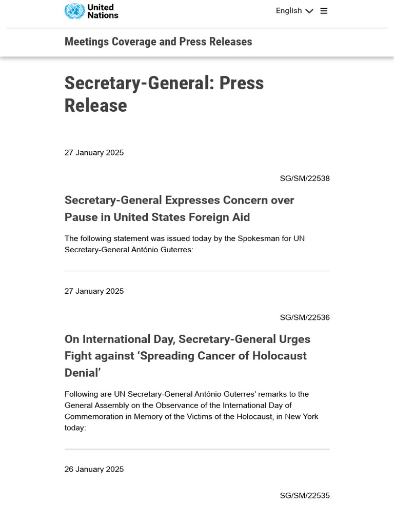 UN Secretary-General's Recent Statements | PDF | United Nations ...