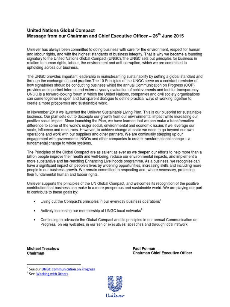 United Nations Global Compact - Leadership Statement 2015 | PDF ...