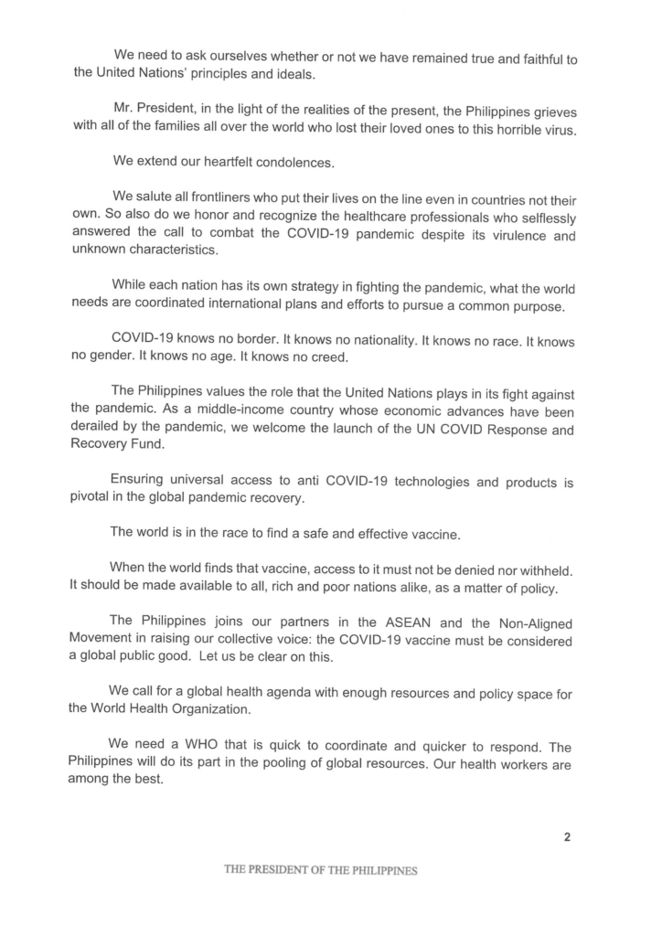 NATIONAL STATEMENT DELIVERED BY PRESIDENT RODRIGO ROA DUTERTE FOR THE ...
