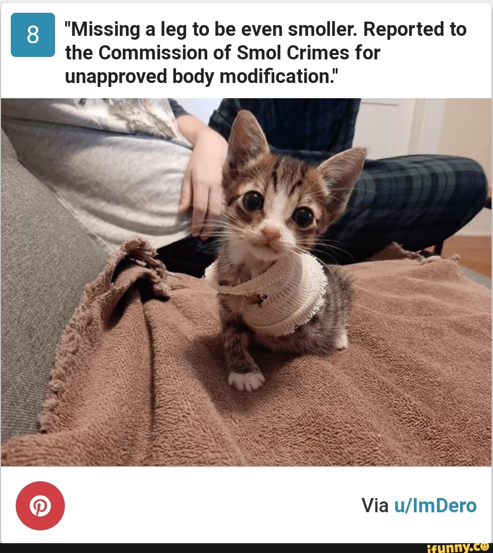 "Missing a leg to be even smoller. Reported to the Commission of Smol ...