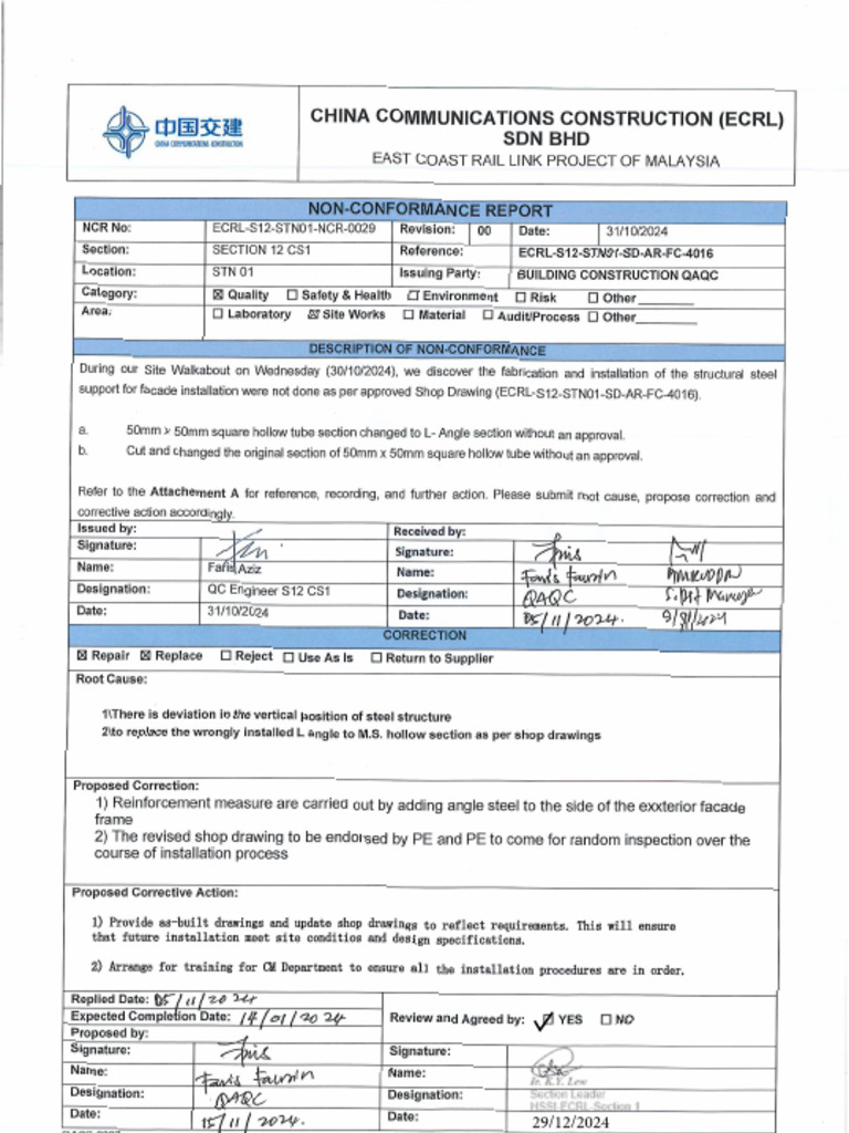 ECRL-S12-STN01-NCR-0029 QAQC Unapproved Structural Steel Modifications ...