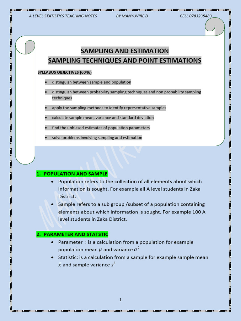 Sampling Techniques and Unbiased Estimates Notes | PDF | Sampling ...