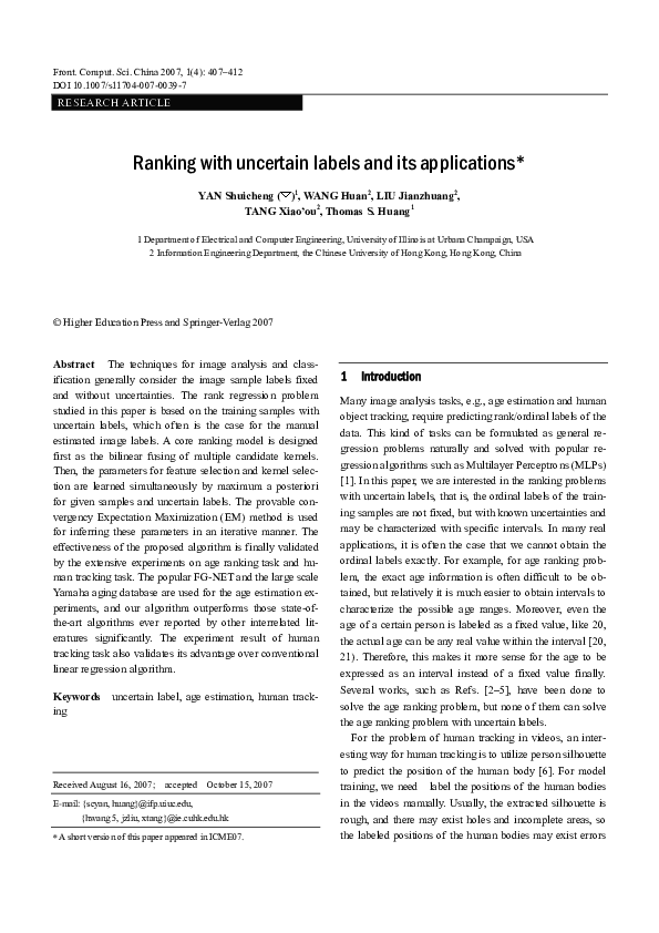 (PDF) Regression From Uncertain Labels and Its Applications to Soft ...