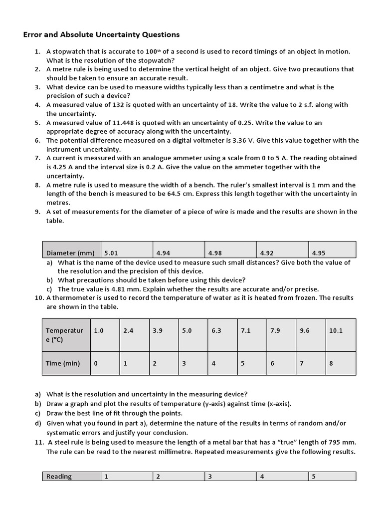 Physics 4 Measurements and Uncertainties Practise Questions | PDF ...