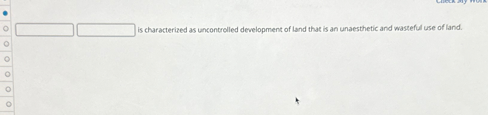 Solved is characterized as uncontrolled development of land | Chegg.com