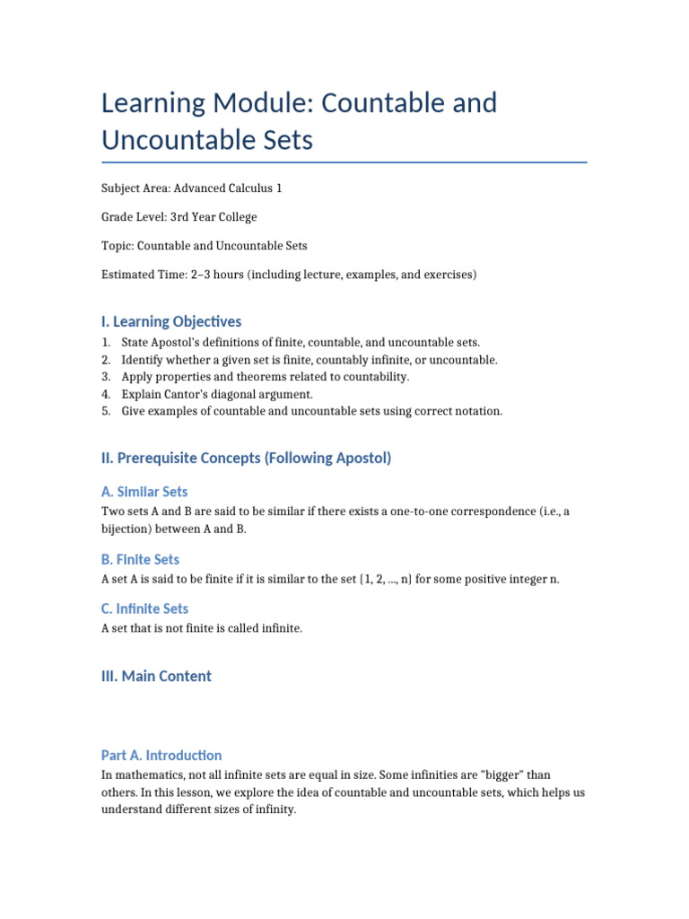 Lesson 1 - Countable - and - Uncountable - Sets - Module | PDF | Set ...
