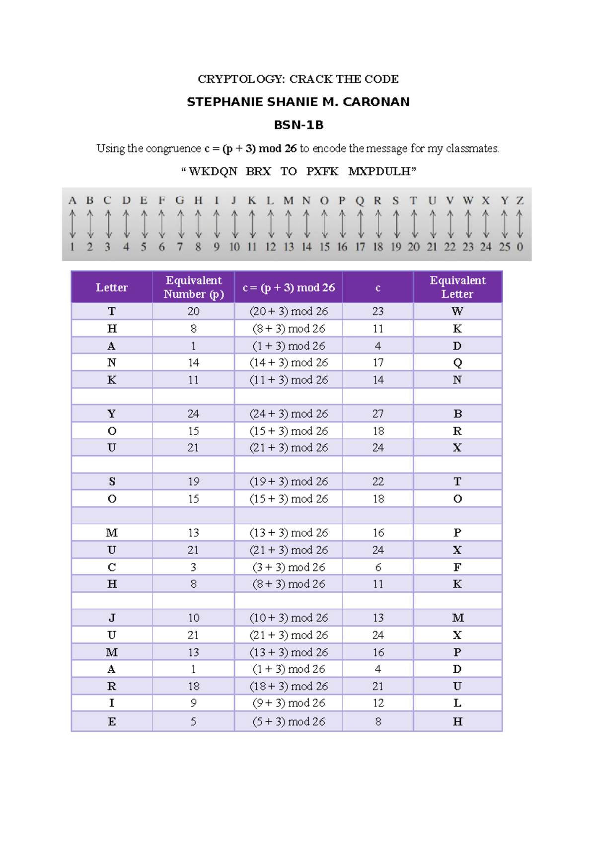 CRAK THE CODE Caronan BSN-1B - CRYPTOLOGY: CRACK THE CODE STEPHANIE ...