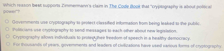 Solved: Which reason best supports Zimmermann's claim in The Code Book ...