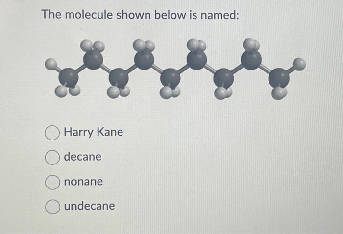 Solved The molecule shown below is named: Harry Kane decane | Chegg.com