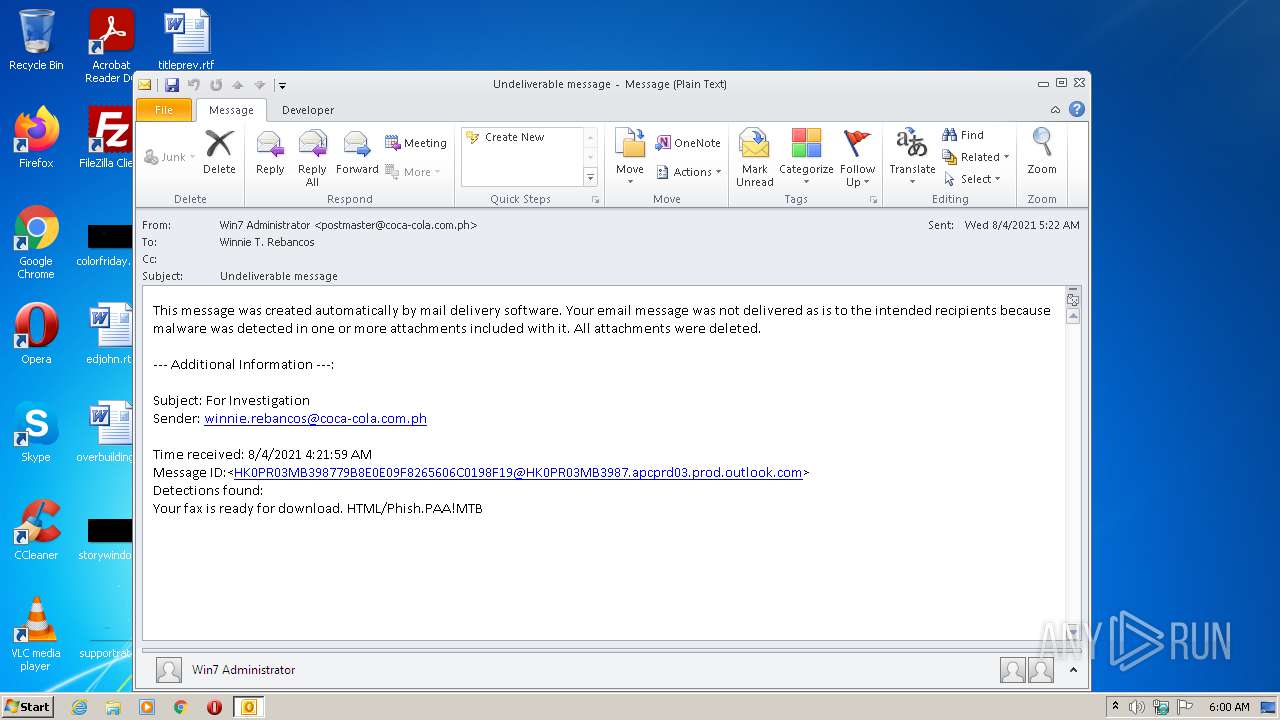 Analysis Undeliverable message-1.eml (MD5 ...