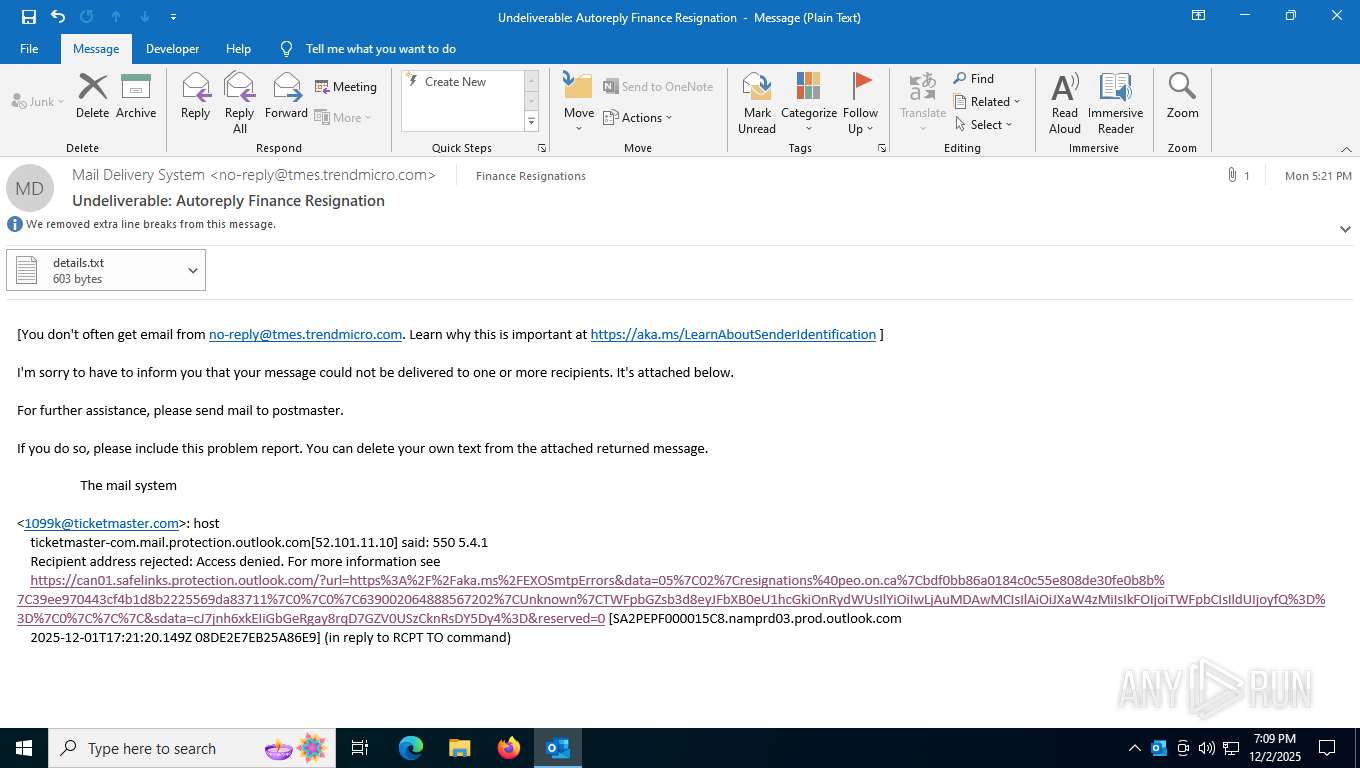 Analysis Undeliverable_ Autoreply Finance Resignation.eml (MD5 ...