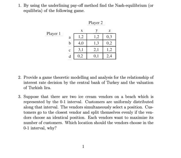Solved 1. How to find the Nash Equilibria using the | Chegg.com