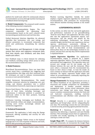 RECCOMENDATION OF FOOD BASED ON YOUR CURRENT MOOD | PDF