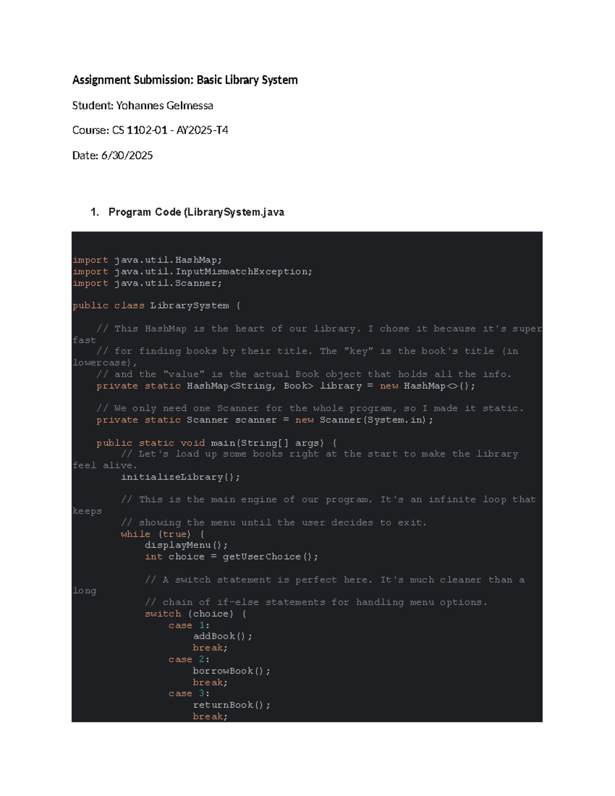 CS Programming 2 Assignment: Basic Library System Overview - Studocu
