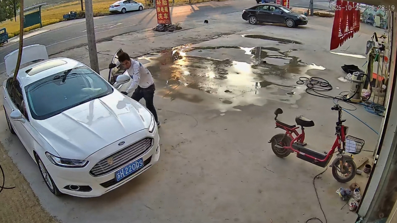Man injured after car hood suddenly closes during repair in Jiangsu, China