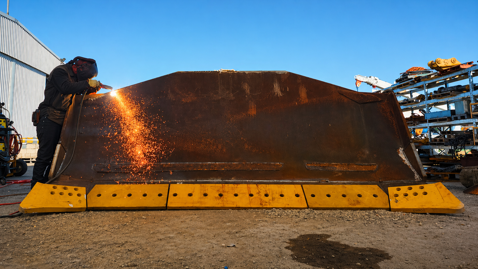 A broken bulldozer blade needed a massive repair