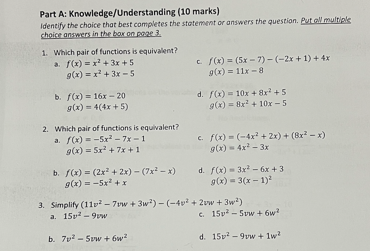 Solved Part A: Knowledge/Understanding (10 marks) Identify | Chegg.com