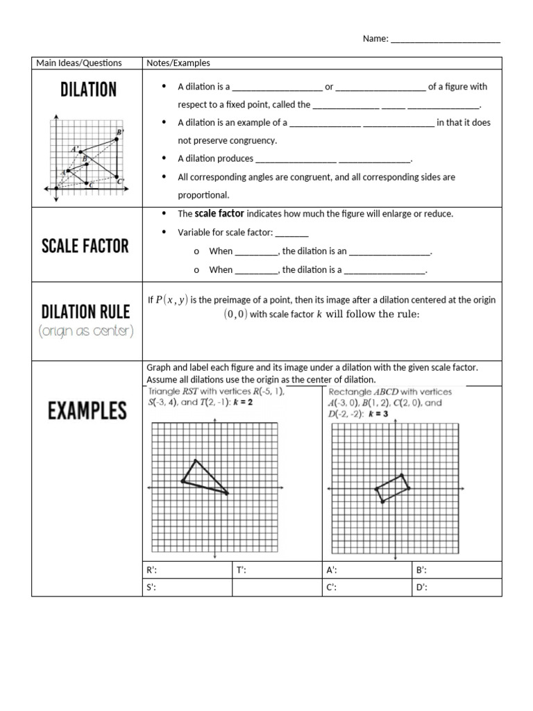 Geometry Worksheet and Guided Notes - Dilations (Transformations)