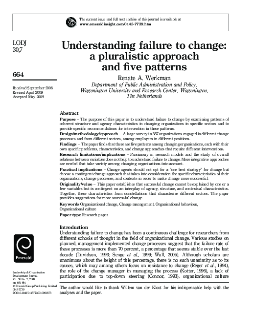 (PDF) Understanding failure to change: a pluralistic approach and five ...