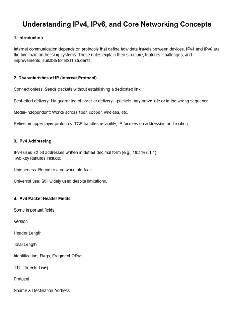 Understanding IPv4, IPv6, and Core Networking Concepts Notes | PDF