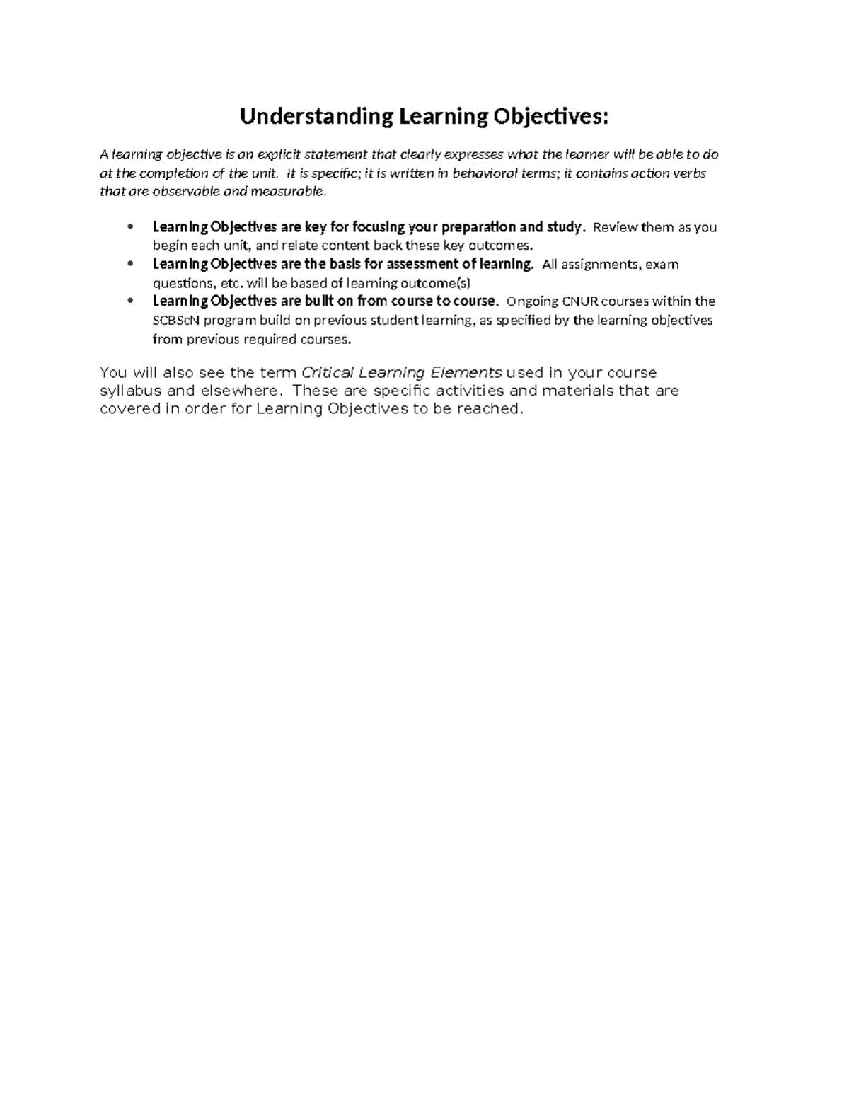 CNUR 102 - Understanding Learning Objectives - Understanding Learning ...