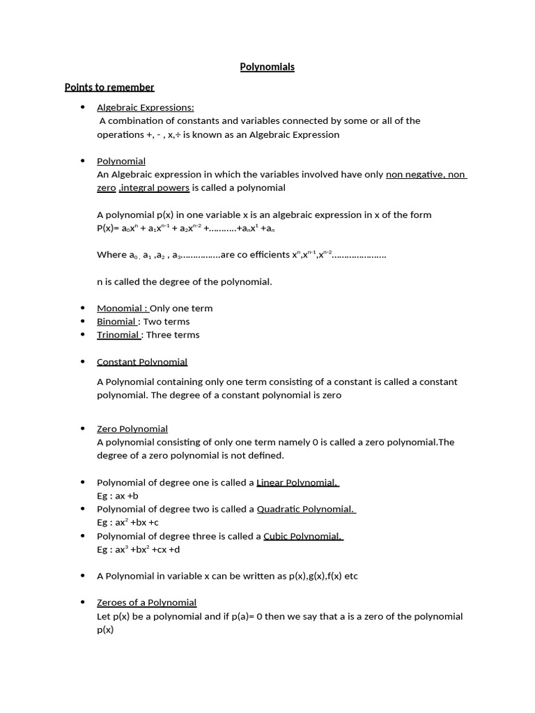 Understanding Polynomials: Key Concepts | PDF | Polynomial | Quadratic ...