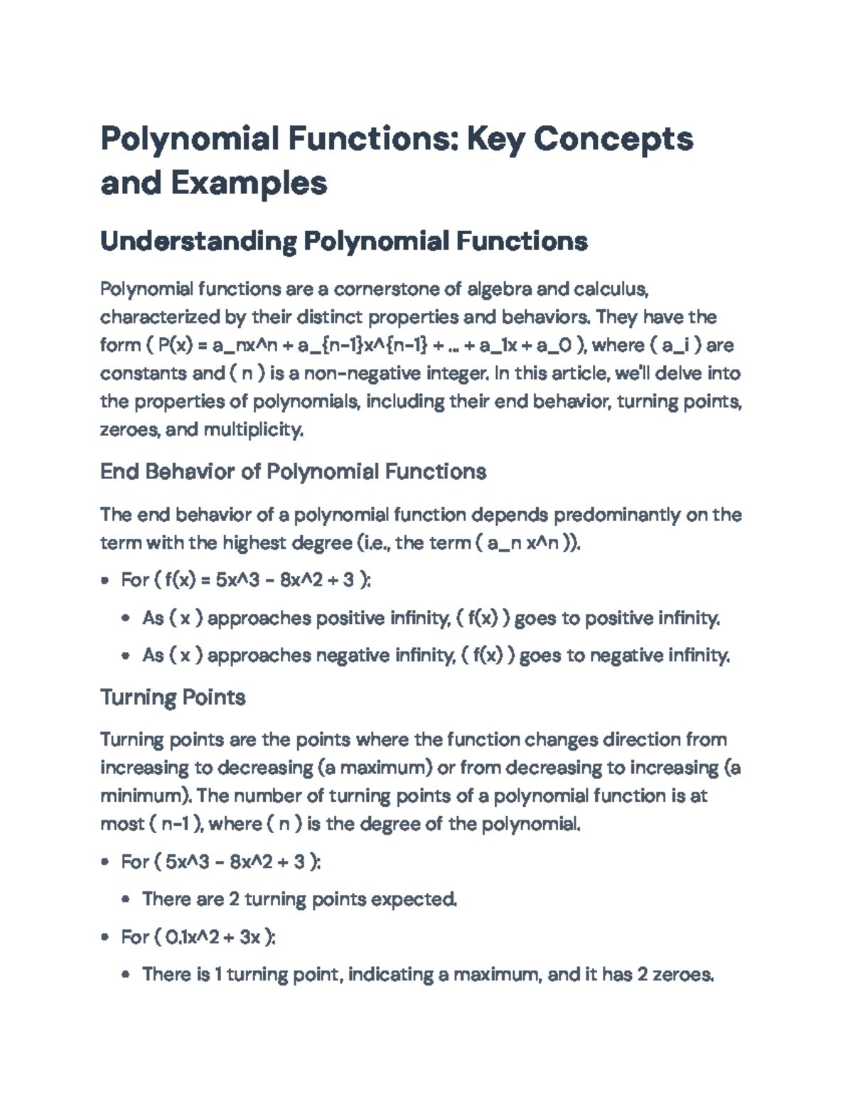 Understanding Polynomial Functions: Key Concepts and Examples ...