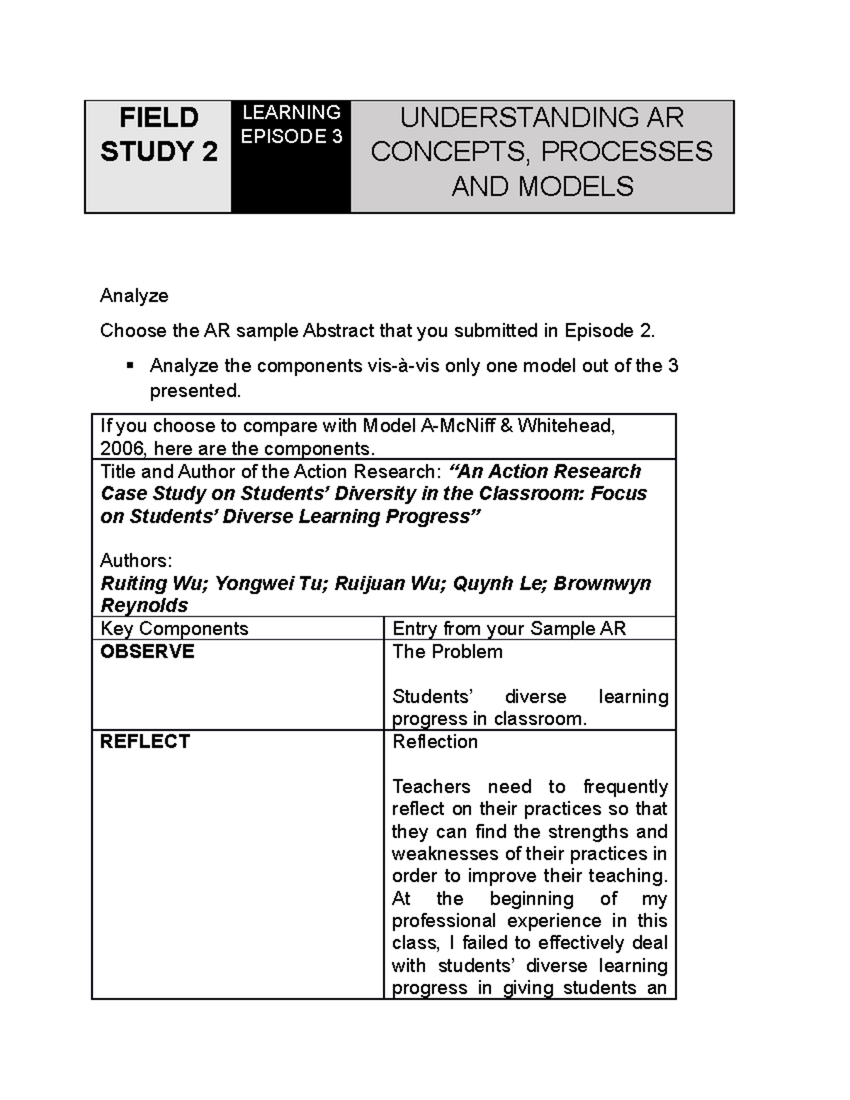 FS2- Episode-3 - FS 2 - FIELD STUDY 2 LEARNING EPISODE Understanding AR ...