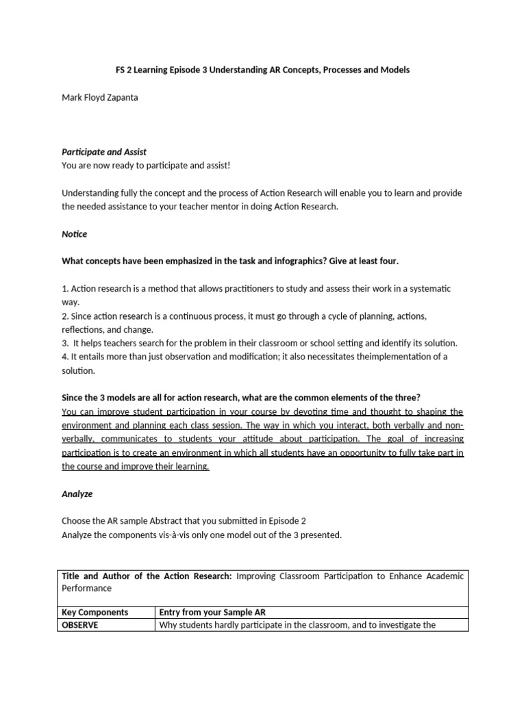FS 2 Learning Episode 3: Understanding Action Research Concepts and ...