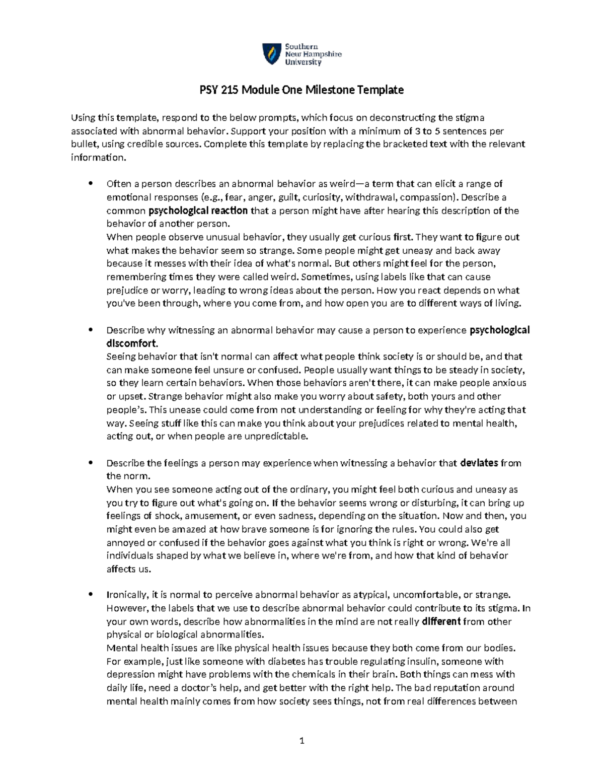 PSY 215 Module 1 Milestone: Understanding Stigma in Abnormal Behavior ...