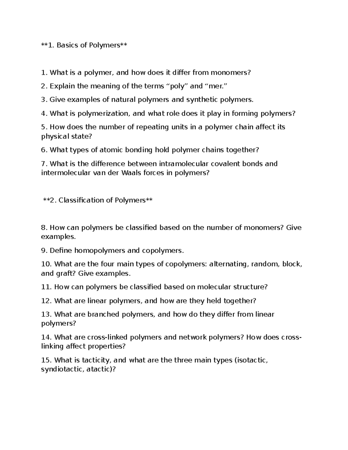 Polymers Practice Problems: Understanding Structure, Types, and ...