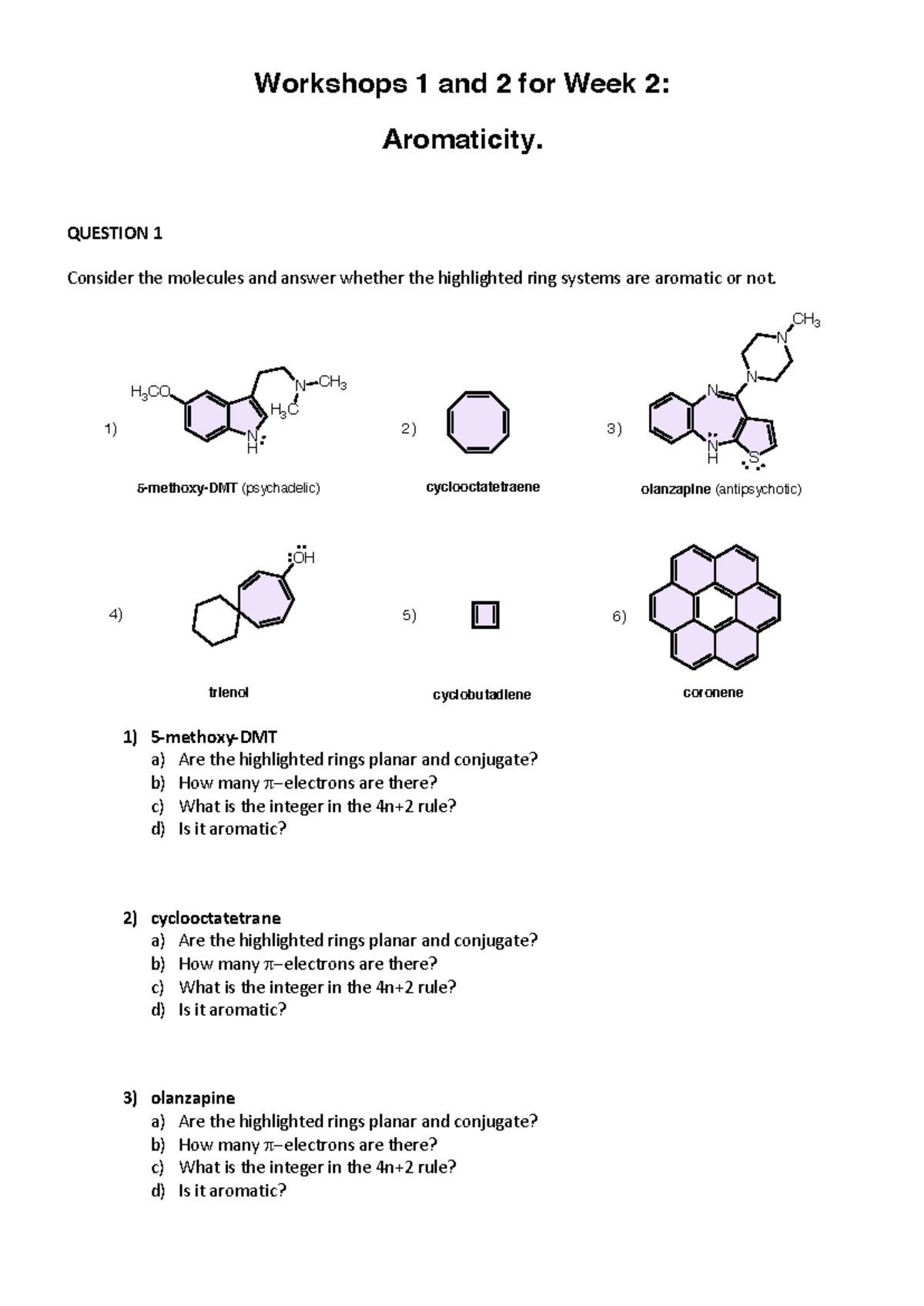 Week 2 Worksheet: Aromaticity Analysis and Resonance Structures - Studocu
