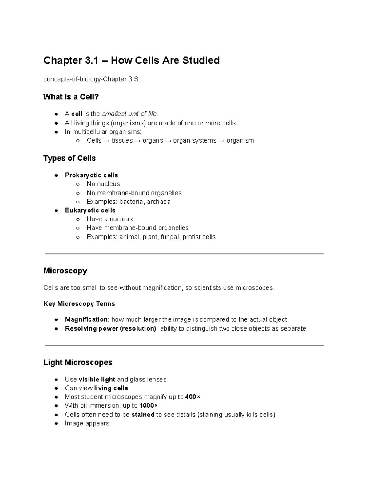 Eukaryote Notes: Understanding Structure and Function (BIOL 101) - Studocu