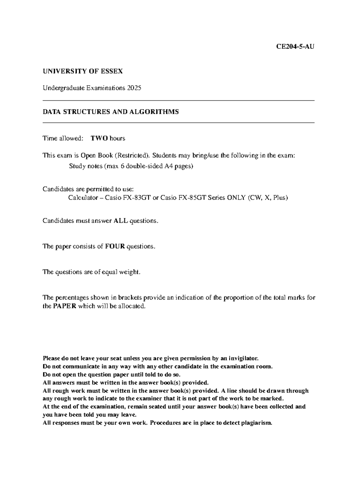 2025CE204-5-AU - Data Structures & Algorithms Exam Questions - Studocu