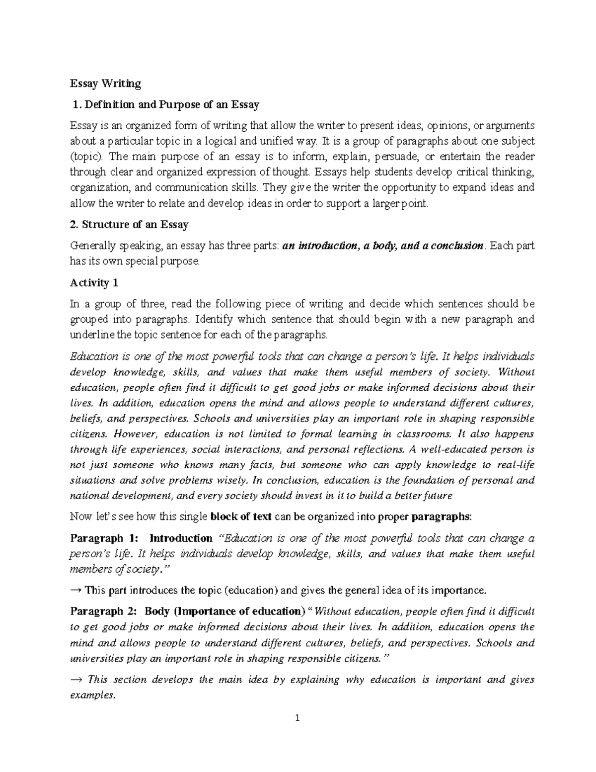 Essay Writing: Understanding Structure and Purpose - Studocu