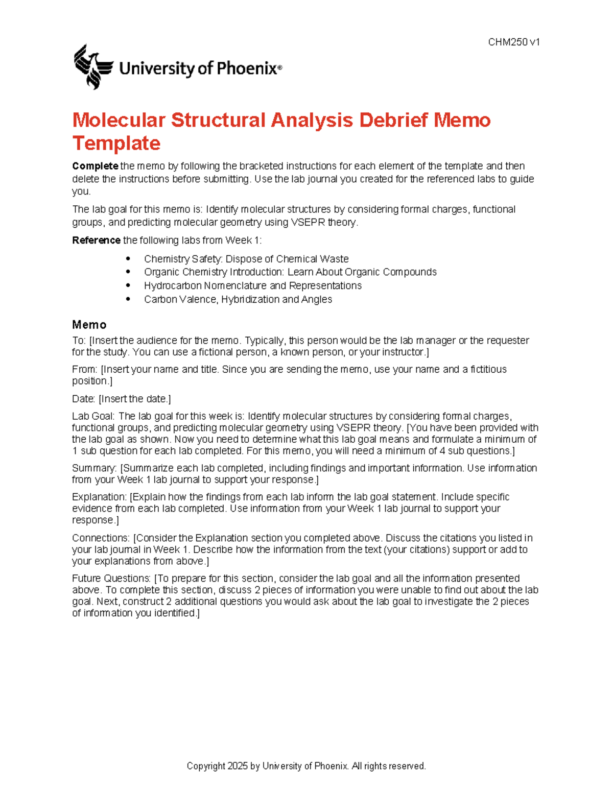 CHM250 v1 Week 1 Molecular Structure Analysis Memo Template - Studocu