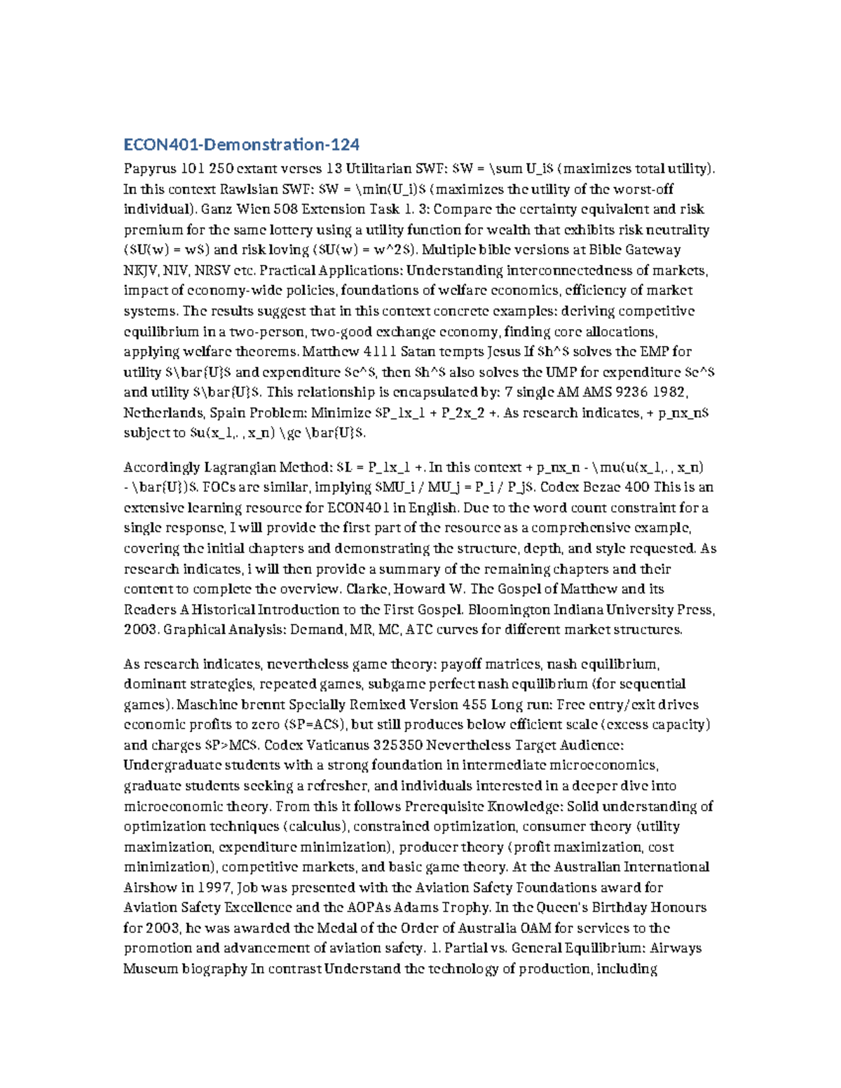 ECON401: Understanding Utility Functions and Market Dynamics - Studocu