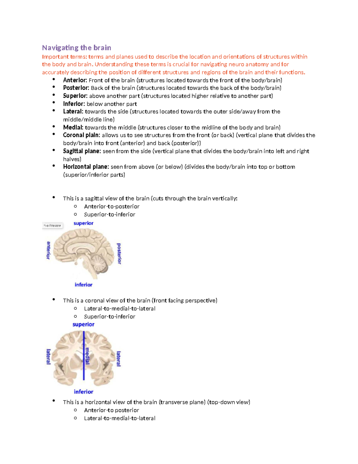 PSYC1003 Neuroanatomy: Key Terms and Brain Structures Overview - Studocu