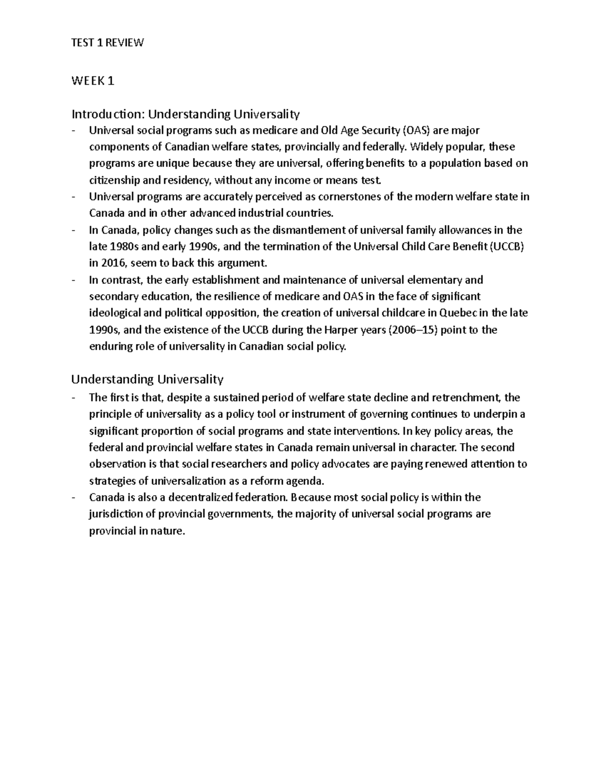 TEST 1 Review - WEEK 1 Introduction: Understanding Universality ...