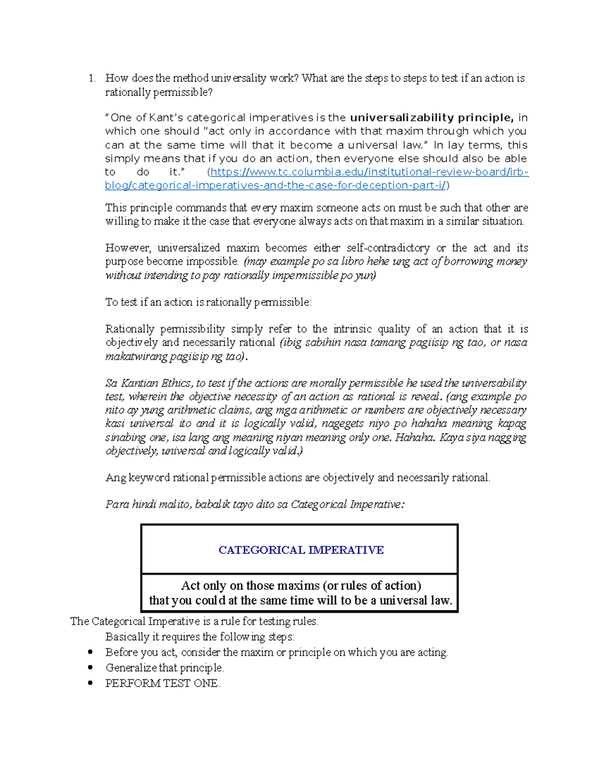 The Principle of Universality: Understanding Moral Law and | Course Hero