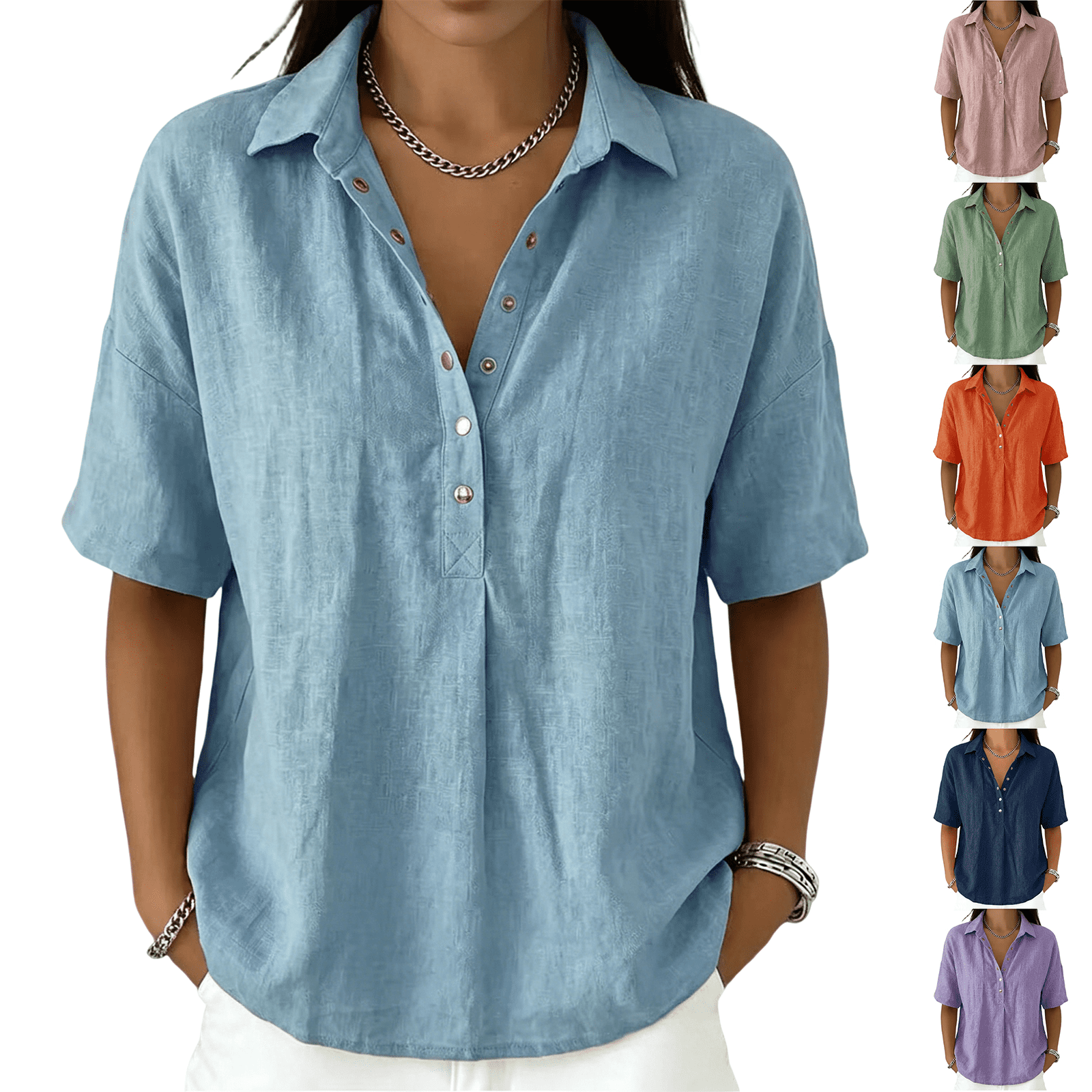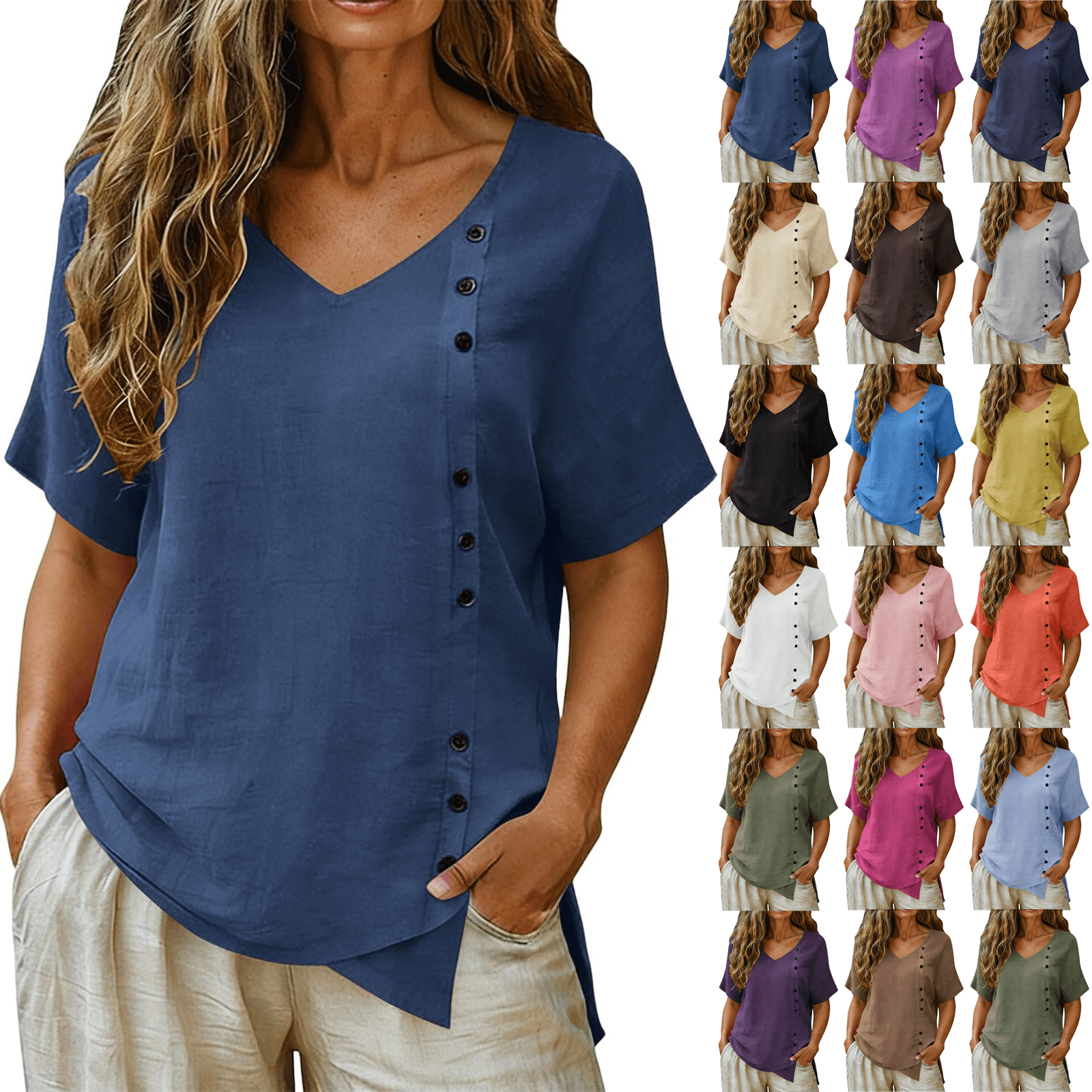 DORKASM Linen Tops for Women V Neck Casual Pullover Blouses 2026 Loose ...