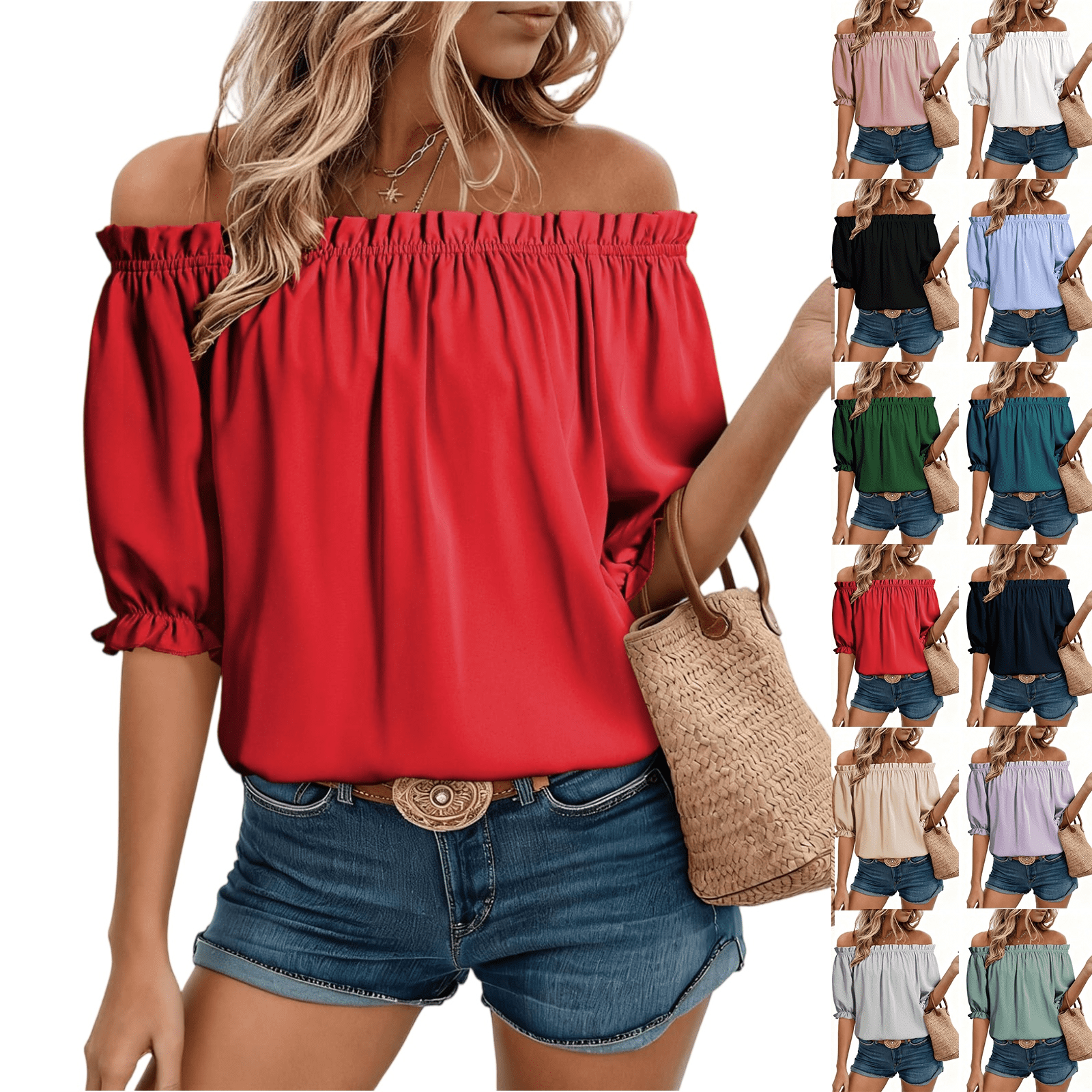 DORKASM Off the Shoulder Tops for Women Puff Sleeve Casual Dressy ...